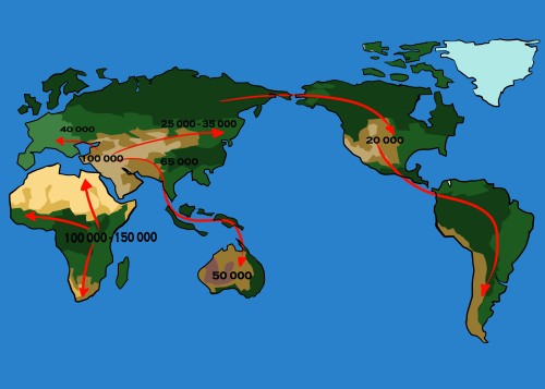 Some Scientists believe that the ancestors who left Africa and moved to most of the other continents of the world were Homo Erectus. Other scientists think that it was another more modern species of human beings called Homo Sapiens who first migrated out of Africa to other continents. Migration is when people move from one place to another. It does not matter whether some scientists believe that it was Homo Erectus who first moved out of Africa while others believe that it was Homo Sapiens who first migrated from Africa. The important thing to remember is that Africa is where human life first began. Scientists agree that most genetic variations are found in Africa. This also proves that all human life started in Africa. Genetic variations are things like skin color, hair type and other things that make us look different.